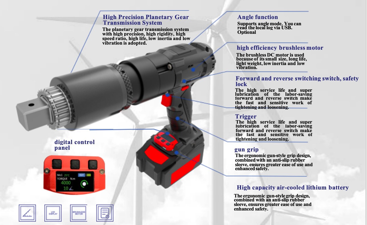 The BM-L/BM-LP series represents the latest generation of brushless torque wrenches for small-screen charging. Featuring cutting-edge brushless motors, this series eliminates carbon brushes, requiring zero maintenance and offering exceptional durability. It operates instantly on standard power supply while meeting stringent requirements for high precision, robust performance, and safety. The series utilizes a high-precision planetary gear transmission system with an output ratio of 1:1.0. Equipped with high-capacity air-cooled batteries and fast-charging technology, it delivers ±5% accuracy.