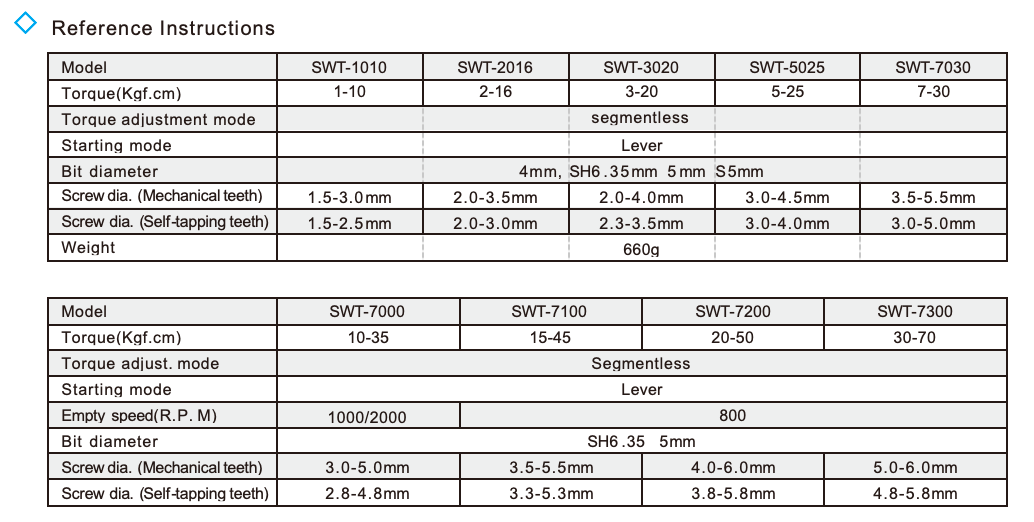 SWT Series  Brushless Electric Screwdriver